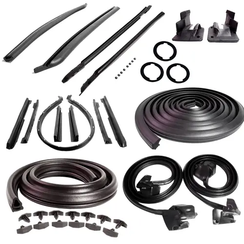The SUPERsoft RK 1700-109 Master Kit is a comprehensive necessity for Buick enthusiasts, expertly crafted to fit your 1970, 1971, and 1972 Buick Skylark Convertible. Often referred to as an essential restoration kit or comprehensive seal set, it's packed with high-quality components like door seals, roof-rail seals, and trunk seals, ensuring that every detail of your classic car is preserved to perfection. This kit is characterized by its robust construction and easy-to-install design, perfect for anyone looking to maintain their vehicle s original charm while ensuring excellent weatherproofing. With features such as the hood-to-cowl seals and rear roll-up seals, you can trust this kit to provide superior protection against the elements. The user-friendly installation means less time spent in the garage and more time enjoying the drive. Each part fits seamlessly, enhancing both the appearance and function of your vehicle s door and body seals. By preserving your Skylark s style and integrity, these components ensure a quiet, comfortable ride free from unwanted moisture. Investing in the SUPERsoft Master Kit means choosing style, durability, and performance that endure. Its unmatched resilience comes backed by a leading 30-year platinum warranty, highlighting a true commitment to quality with our "No Hassle" guarantee. Don t wait to experience the difference in comfort and assured sealing; equip your classic Buick with this premium kit today and drive with confidence.