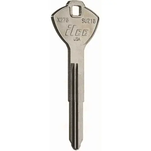 This automotive key blank is manufactured from solid brass. It is nickel plated to assure a long-lasting, durable and bright finish. This is a genuine KABA ILCO product.