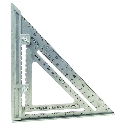 The Big 12 is seven tools in one like a framing square, try square, miter square, protractor, saw guide, stair gauge and out-of-square corner angle finder. It's constructed of heavy-gauge aluminum alloy and includes the layout bar for use in determining out-of-square corners. Also included are the Swanson blue book for roof and stairway layout and layout bar with hardware.
