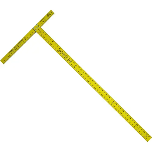 Swanson's 47-7/8 in wallboard square has been designed for durability, efficiency and safety. High-grade aluminum alloy construction makes for a durable foundation, while five steel rivets and two steel roll pins accurately secure the 1/4 in T, heavy-duty head to the body. The heavy-duty head also offers a 1/2 in working surface for added stability and ease of use on all material. The 47-7/8 in body was designed to allow the square to hang freely on 48 in material. The thermally fused yellow powder paint finish has been applied for increased visibility. Increased visibility translates to personal safety when using this square as a cutting guide.