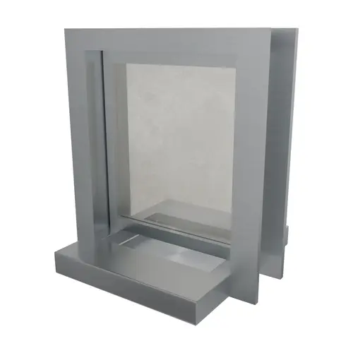 The Night Service Window is designed for controlled customer transactions in commercial and institutional environments where secure or after-hours service is required. It is commonly used at motel registration desks, 24-hour service stations, drive-up windows, and customer service counters where separation between staff and customers is needed. The unit is constructed from stainless steel with a brushed stainless steel finish to match common service counter and exterior window hardware. The housing uses 16 gauge stainless steel and is glazed with 1-1/4" Level 1 acrylic, providing a clear viewing area for transactions. The acrylic panel is fixed within the frame and does not include a speak-through system. Voice communication occurs through the deal tray opening. An integral non-ricochet deal tray is included for passing cash, credit cards, keys, and small items without opening the window. The tray is mounted on a stainless steel shelf measuring 14-3/16" width x 18" depth x 2" height, supporting controlled item transfer. The non-ricochet design helps manage item movement during use. Overall unit size measures 18-3/16" width x 18" depth x 21-5/8" height and fits a wall opening of 14-3/4" width x 20" height. A 2" wide flange covers cut-out edges for a clean installation. The window supports adjustable wall thickness from 4" to 8-1/2". Installation instructions are included. An exterior overhang is recommended for outdoor installations. The unit is suitable for night service window, transaction window, payment window, drive-up window, and service counter window applications.