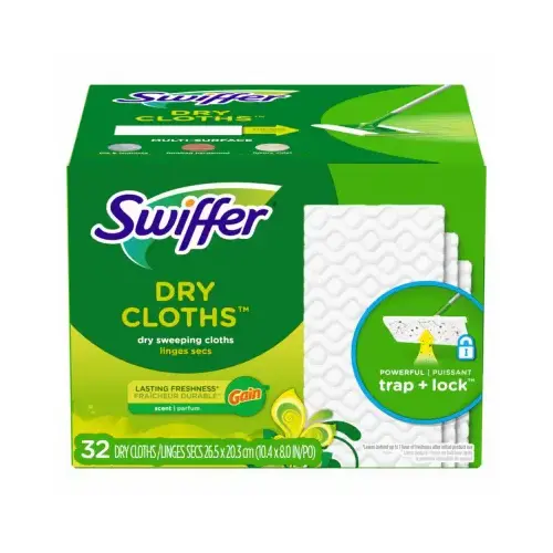 Swiffer, 32 Count, Dry Cloth With Gain Original Scent, Thick, Dirt Grabbing Ridges & Grooves, Leave Your Floors Cleaner Than A Broom, Even On Textured Surfaces, Easily Conform To The Surface Of Your Floors & Grout Lines, Picking Up More Dirt, Dust, & Hair, Can Be Attached To An Existing Swiffer Sweeper Or Can Be Used To Wipe Off Dusty Furniture.