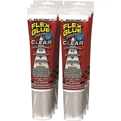 FLEX GLUE is an easy-to-use, super strong, rubberized, waterproof glue that instantly bonds, seals and repairs virtually everything. No need for screws or nails, its perfect for all types of repairs. Available in 4 and 6 oz squeeze tubes. FLEX GLUE Pro has even more instant grab. This tough, super thick waterproof glue is formulated for extra heavy duty applications. For use with a standard caulking gun (not included). Available in 9 oz. and 10 oz. cartridges. Our high-tech formula for FLEX GLUE CLEAR is the best in clear adhesives. Many other clear glues are water based or solvent based, and can shrink up to 40% at times. Unlike these other brands, FLEX GLUE CLEAR will not shrink or crack.