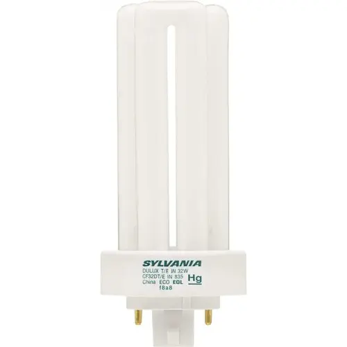 This Sylvania 20885 CF32DT E IN 835 ECO 32-Watt CFL 3,500K is an excellent choice to change their lighting scheme. This package contains a bulb and a base. The base is used for consumer lighting and general lighting and the bulb features a rated life of 12,000 hours and 35,000K color temperature. This 4-pin CFL bulb is conveniently easy to install. Simply follow the included instructions. This is a triple tube compact fluorescent model. Buy one or multiple of these CFL light bulbs, depending on your needs.