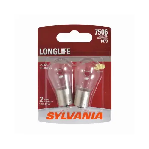 Twin bulb pack Sylvania Long Life miniature bulbs provide standard performance, rated at 1000 service hours, 460 lumens at 2800K light output. Ideal for use in your car's interior and exterior clear bulb needs. Long Life bulbs are a approved direct replacement for your vehicle.