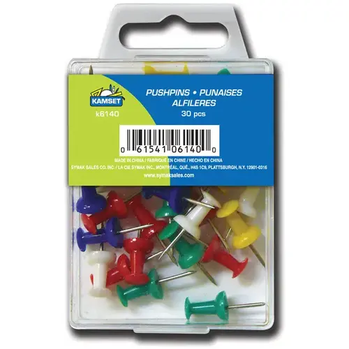 Symak Sales Co, Inc UC1459 Push Pins ASST Colors pack of 30