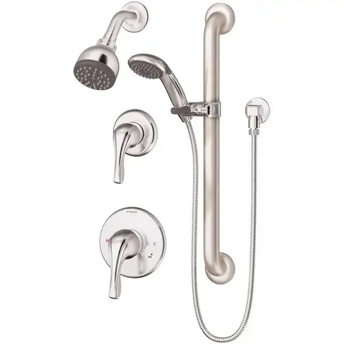 An evolution of our essential collection, the Origins 2-Handle Wall-Mounted Shower Trim Kit with Hand Shower now offers softer detailing with rounded features that give it a distinctive presence in any traditional bathroom. All of Symmons' products are designed with the customer in mind; the proof is in the details. Plated in an abrasion-resistant polished chrome finish over metal, this shower faucet is durable and functional, backed for a lifetime. Easily switch between the showerhead and hand shower with the separate diverter handle. With an ADA compliant double lever handle design, the valve cover plate features hot and cold indicators which allow custom temperature setting with ease of use for everyone. At an eco-friendly low flow rate of 1.5 gallons per minute, the single mode showerhead is WaterSense certified so that you can conserve water without sacrificing performance, which will, in turn, save you money on your water bill. This model includes everything you need for quick installation. You'll easily be able to update your bathroom without having to replace your valve. With features that are crafted to last and a style that is designed to please, Symmons' Origins 2-Handle Wall-Mounted Shower Trim Kit with Hand Shower is a seamless addition to your shower for a lifetime backed by our technical support team and limited lifetime warranty.