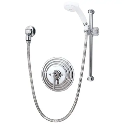 Symmons Commercial Temptrol Trim. Chrome Finish. Temptrol Shower Trim With Lever Handle. Wall Connection. 30 Slide Bar For Hand Shower. In-Line Vacuum Breaker. Flexible Metal Hose. 1-Function Handshower. Mfg #C-96-300-B30-V-1.5-TRM