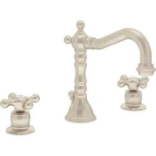 Created to reflect a look of historical elegance and sophistication, the Carrington nickel widespread bathroom faucet features a traditional tapestry of intricate lines and delicate details. All of Symmons products are designed with the customer in mind; the proof is in the details. Plated in a scratch-resistant brushed nickel finish over solid metal, this 8 inch bathroom faucet has the durability to add ornate styling to your powder room for a lifetime. The high arc design allows enough clearance to access your sink, regardless of whether you're filling a cup or just washing your hands. With an ADA compliant double-handle design that features hot/cold indicators, this widespread nickel bathroom faucet allows you to ensure custom temperature setting with ease of use for everyone. At an eco-friendly low flow rate of 1.0 gallons per minute, this nickel widespread faucet is WaterSense certified so that you can conserve water without sacrificing performance, which will, in turn, save you money on your water bill. This nickel bathroom faucet includes everything you need for quick installation, including ceramic disc valves to prevent dripping, supply lines for connection, and pop-up drain assembly for convenience. With features that are crafted to last and a style that is designed to please, Symmons Carrington Nickel Widespread Bathroom Faucet is a seamless addition to your bathroom sink for a lifetime backed by our technical support team and limited lifetime warranty.