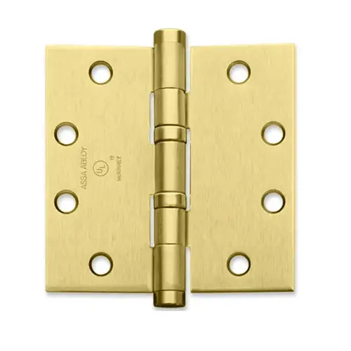 Hinge, Full Mortise, 5-Knuckle, Standard Weight, 4-1/2" x 4-1/2", Square Corner, Non-Removable Pin, Bright Brass