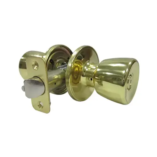 Tru-Guard, Polished Brass Finish, Medium Tulip Style Knob Entry Lockset, For Exterior Door, 5 Pin Cylinder, Tubular Latch With Adjustable Backset 2-3/8" - 2-3/4", 2 Keys Provided, Re-Keyable KW1 Keyway, Grade 3, KA3, Utilize TV #113-174 (EZ1-TRV) When Making Duplicate Keys.