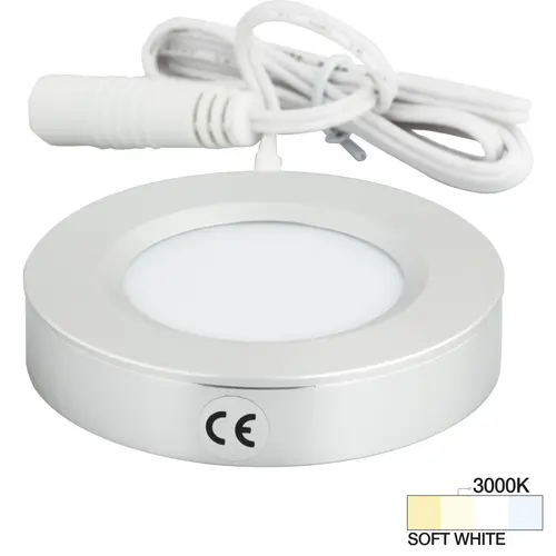 180 Lumens/Fixture 12-volt Standard Output Pearl Series Puck Light, Single-White, Brushed Aluminum, Soft White 3000K
