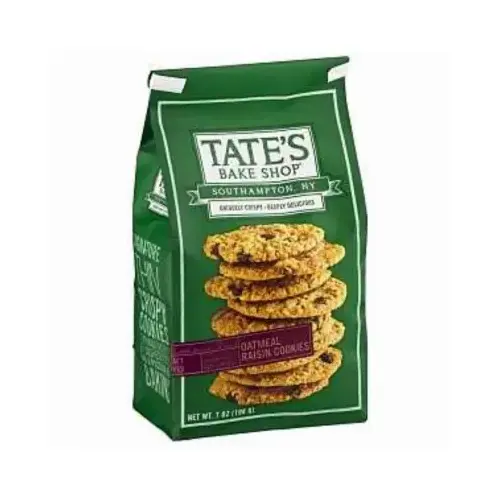 The great taste of tates meets a classic cookie and the result will remind you of home. Our fresh-baked oatmeal raisin cookies are full of plump, juicy raisins and a hint of cinnamon for a scrumptious favorite that tastes like it just came out of moms oven. Baked to a ideal crunch and ready to make any day delicious.