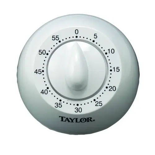 The mechanical timer features a compact size with clear numbers for optimal viewing. Simple and quick to use, set up to 60 mins for many timing applications. A longer ring is clear and loud enough to hear across the room.
