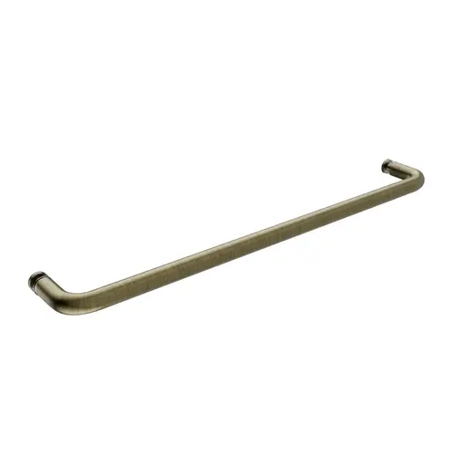 The Standard Tubular Shower Towel Bar Single Mount Without Washers is designed to give functionality and a clean appearance to frameless glass shower doors. Constructed of 1mm thick heavy brass tubing with an Antique Brass finish, this towel bar blends with a wide range of shower hardware, bath fittings, and bathroom layouts. It measures 26" center to center with a total length of 26-3/4", providing balanced support for towels while maintaining a streamlined look on glass panels. The 3/4" tubular diameter makes it easy to grip, supporting everyday use in residential bathrooms. This towel bar is compatible with glass thickness from 3/16" to 1/2" and requires a 3/8" or 1/2" hole size for secure mounting. The single sided mount allows the bar to attach firmly to one side of the glass, making it suitable for frameless shower doors, glass enclosures, or bath partitions. Low profile 1/8" end caps make this model especially effective for sliding bypass shower doors, minimizing obstruction during operation. The bar is built from 1mm thick brass tubing, designed to integrate with shower towel bars, tubular bars, or bathroom towel racks. Included stainless steel mounting hardware ensures a safe and straightforward installation process.