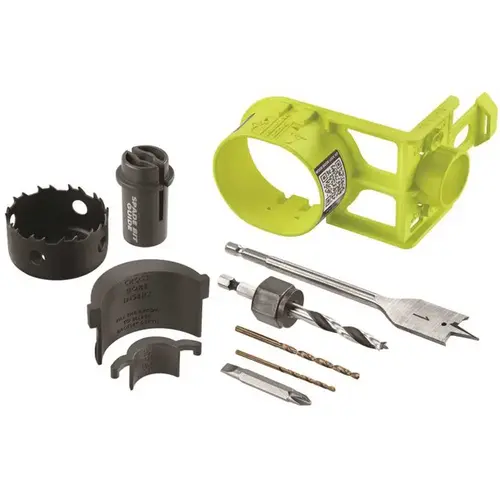 RYOBI introduces the Wood Door Lock Installation Kit. This addition to the RYOBI Door Installation Program makes installing a door lock or deadbolt a breeze with an easy 3-step process. This kit features a built-in Auto-Strike Locator allowing you to perfectly line up your door lock with your strike plate, measurement free. This easy to use kit is compatible with both standard backsets, 2-3/8 and 2-3/4, as well as both common door thicknesses, 1-3/8 in. and 1-3/4 in. The included spade bit guide accurately centers the latch bore and extends the life of the tool. Be sure to look at the rest of our door lock products for all of your door lock projects.