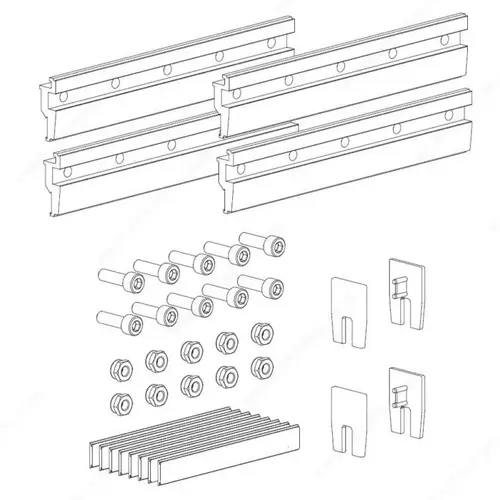 The clamping shoe set is designed to work with clip-on sliding door system Vetro 40 for 3/8 in (10 mm) or 1/2 in (12.7 mm) thick glass.