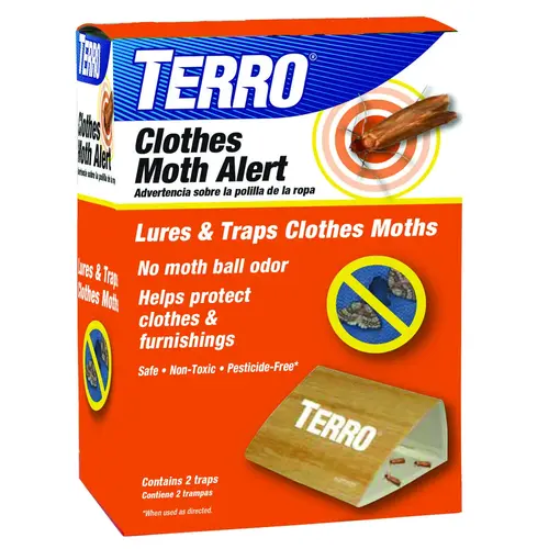 The larvae of webbing clothes moths are a destructive pest that target natural fibers, including wool, fur and certain fabric blends. These pests can go undetected for a long time, leaving your favorite clothes and fabrics permanently damaged. TERRO clothes moth alert captures clothes moths before they lay eggs. The presence of trapped moths will alert you of a possible infestation.