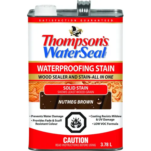 Thompson's WaterSeal Wood Stain, Net Content: 3.78 L, Solid, Nutmeg Brown, Application Method: Brush, Paint Pad, Roller, Spray, 50 to 95 deg F, Applicable Materials: Wood