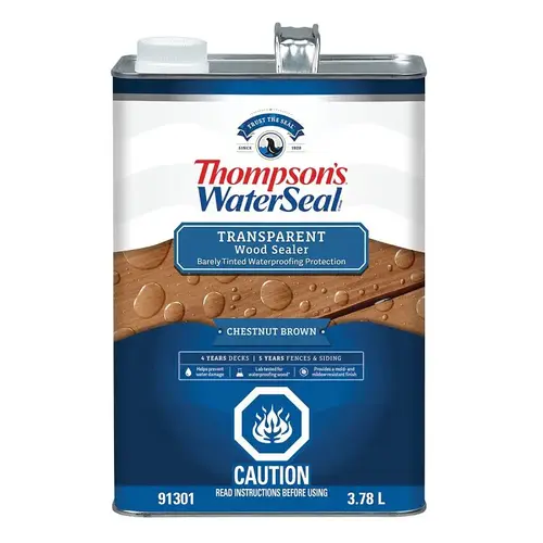 Thompson's WaterSeal transparent wood sealer provides waterproofing protection for exterior wood. Transparent opacity adds subtle color and shows the most wood grain.