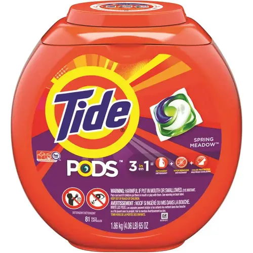 Tide PODS laundry detergent pacs offer surprisingly powerful clean in 1 step. Combining super concentrated detergent, extra odor fighters, and extra stain removers, each capsule cleans, freshens, and rejuvenates clothes for brighter brights and whiter whites. Small yet powerful, Tide PODS delivers 10x cleaning power in a convenient, pre-measured unit dose form. Also, thanks to the special film and HE Turbo technology with quick-collapsing suds, the capsules dissolve completely in all temperatures and do not produce excess suds. The Spring Meadow scent is infused with with fresh floral notes to help keep your clothes smelling great. More than just a liquid in a pouch, Tide PODS delivers a surprisingly powerful clean in 1 step.