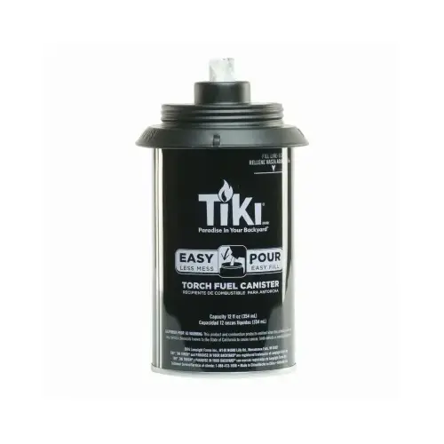 TIKI Torch Canister, 12 oz Fuel, Citronella Odor/Scent, Fiberglass/Metal, Dimensions: 2-3/4 in W x 6-1/2 in H, Suitable for: 12 oz of TIKI Citronella or OFF BiteFighter Torch Fuel, Includes: (1) Fiberglass Wick