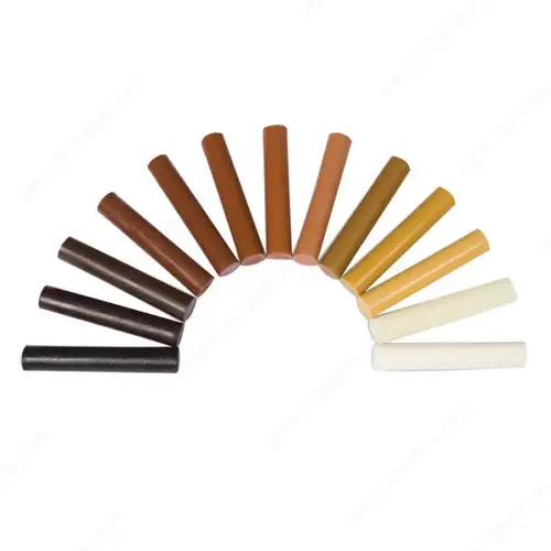Waxstix are manufactured using synthetic waxes. Waxstix are applied by rubbing the stick over the damaged area. For larger areas use Timbermate water based woodfiller. In cases where woodfiller cannot be used heat a knife blade with a flame and apply hot wax to damaged area, remove excess by rubbing with smooth side of sandpaper or a piece of cardboard. Waxstix will not shrink or sink and does not contain beeswax Waxstix are so easy to use and so handy for quick repairs to scratched or damaged timber Waxstix can be used on Nail Holes, Joints, Scratches For most scratches, simply rub the stick over the damaged area. For larger, deeper indentations where Timbermate Water-based Woodfiller cannot be used, heat a knife blade with a flame and fill damaged area with hot wax Remove excess wax by rubbing with the smooth side of sandpaper or a piece of cardboard