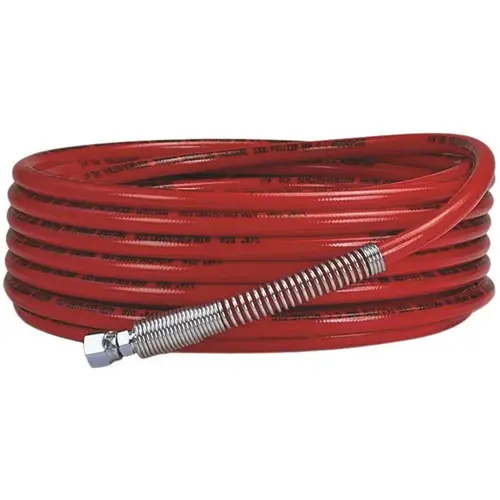 The TITAN 50 ft. airless paint sprayer hose can be used with most common architectural paints and solvent based coatings. For durability, its polyurethane cover is abrasion resistant. It features a thermoplastic inner lining and has swivel connections on both ends.