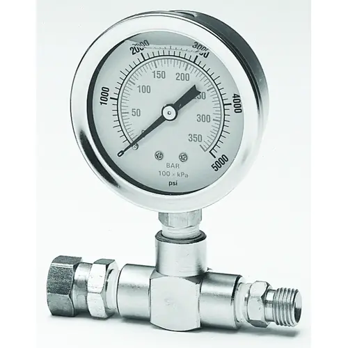 Includes: 5000 psi High-Pressure Fluid Gauge to T-Fitting 1/4 in (M) Fitting and 1/4 in (F) Fitting