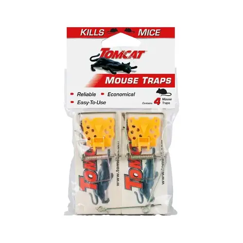 Tomcat, 4 Pack, Deluxe Wooden Mouse Trap, Yellow Plastic Bait Pedal.