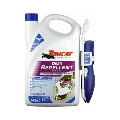 Tomcat Deer and Rabbit Repellent, 2555 sq-ft Coverage Area, Odor/Scent: Peppermint, Clear/Hazy, Ingredients: Garlic Oil, Peppermint Oil, Sodium Lauryl Sulfate, Indoor/Outdoor: Outdoor