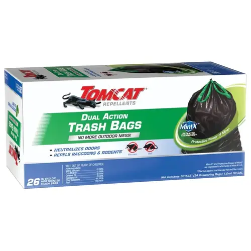 Tomcat Trash Bag, 30 gal Capacity, Plastic, Black, 33 in Length, 30 in Width, 1 mil Thickness, Drawstring Closure