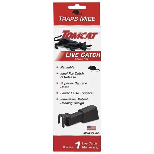 Tomcat live catch mouse trap is a catch-and-release option for your mouse infestation. Able to blend into any environment, the trap is designed to let you catch one mouse at a time without harming it. After catching a mouse you can release it to reuse the trap.