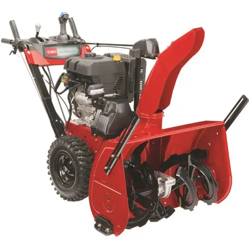 Toro Snow Blower Commercial-Grade Clearing; enjoy years of optimal performance and dependable use with the 420cc Toro premium 4-cycle OHV engine Precision moves. smooth, tight turns are a snap with power steering Self propelled; quickly and easily cut through snow with total speed control, 6 speeds forward and 2 speeds reverse Tackle cold nights with ease; keep your fingers toasty and enjoy a brighter and broader view with hand warmers and LED headlight Chute control; quickly change the chute and deflector direction with a single, smooth motion thanks to the Quick Stick chute control Stay the course; minimizes clogging and routes heavy snow away from chute and back into the auger with Toro's patented anti-clogging system Double the Strength. Toro doesn't use shear pins. Instead we designed a system 2x stronger that's designed to work, not break Tight spaces; place the snow with greater precision, such as right next to your fence line, or throw the distance with a double deflector Right fit for you; ideal for extra-large driveways that can hold 10 or more parked cars and 9 in.-20 in. of snow We've got you covered; Toro stands behind this product with a 5-year limited warranty (residential only) and a 1-year commercial warranty. Easy start; simply push the button and you're ready to snow blow with electric start Tested and trusted; choose with confidence, knowing millions of people worldwide count on Toro snow blowers. Mfg #38844