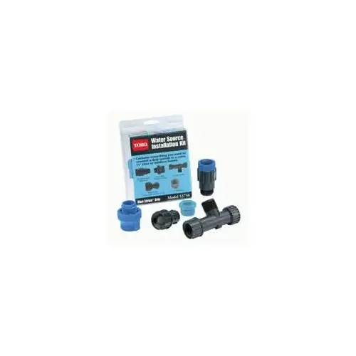All inclusive kit saves time and frustration. Tough, durable construction for longer life. Installation kit contains everything you need to hook-up Toro blue stripe drip 1/2 in hose from a valve, riser or faucet. Kit includes one 25 psi pressure regulator, one 125 mesh filter, one hose bibb vacuum breaker, one hose swivel, one 1/2 in x 3/4 in bushing.