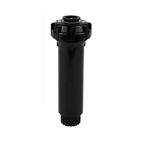 TORO 570Z Pro Pressure Regulated Pop-Up Sprinkler, 1/2 in Connection, FNPT Connection, Fixed Nozzle, 27 deg Nozzle Trajectory, 4 in Pop-Up Height, 11-1/4 to 15 ft Operating, 3.3 gpm Flow Rate, 30 psi Pressure, ABS, Black, Dimensions: 2.075 in H x 2.075 in W x 6.3 in D