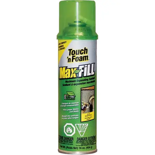 Our maximum expanding formula, in the familiar green can, is the original Touch 'n Foam sealant formulated to fill gaps and voids all around the home. Max Fill provides three times the expansion to fill gaps greater than 1 in wide. Its weather-resistant bond seals out drafts while blocking insects and other pests. It can be used indoors or outdoors.