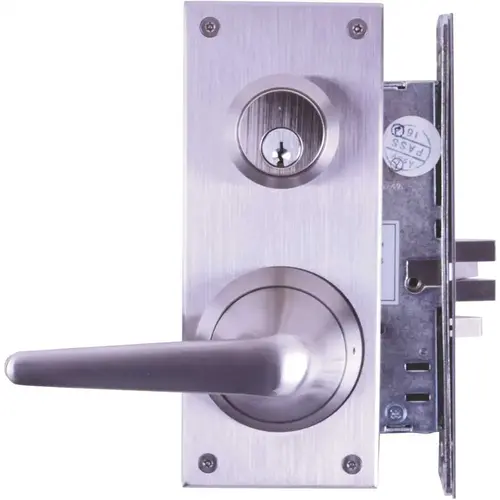 Heavy Duty Anti-Ligature Lever Mortise Lockset, Grade 1, Storeroom/Closet, Keyed, ANSI, Escutcheon Lever Trim, Satin Stainless Steel
