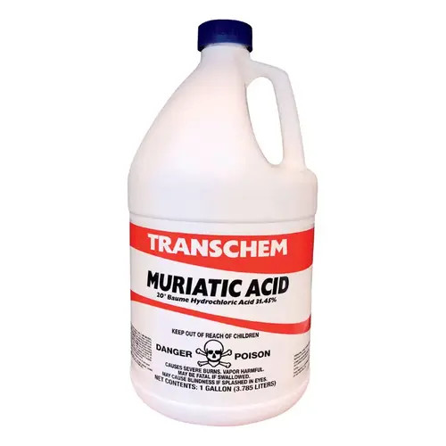 Professional Strength 31.45% HCL ( Muriatic Acid ). Excellent for pH reduction in swimming pools or to clean and etch masonry surfaces. Cleans and removes efflorescence from concrete surfaces.