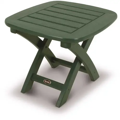 The Trex Outdoor Furniture Yacht Club 21 in. x 18 in. Side Table is the perfect accent piece to use with any of the Yacht Club collection chairs, benches or chaise. It provides the ideal spot for resting drinks, snacks and your favorite book. It's also available in a variety of attractive, fade resistant colors that are designed to coordinate with your Trex deck. This durable table is built to last and look good for years as it resists weather, food and beverage stains and environmental stresses. And because it's backed by a 20-year warranty and made with solid HDPE lumber, you don't have to worry about it rotting, cracking, splintering or requiring such upkeep as painting or staining.