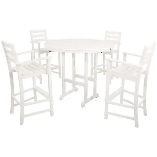 Watch how quickly happy hour turns into an entire evening of fun when you gather with good friends around the Trex Outdoor Furniture Monterey Bay 5-Piece Bar Set. This inviting set is as comfortable as it is good-looking, and once it takes up residence on your Trex deck, it may just become the hottest spot in the neighborhood. Available in our attractive, fade-resistant colors, the set includes 4 TXD202 Monterey Bay Bar Arm Chairs and a TXRBT248 Monterey Bay Round 48 in. Bar Table. it is built to last with durable HDPE lumber that is extremely low-maintenance as it resists weather, food and beverage stains, and environmental stresses. In addition, it will not rot, crack or splinter and it never requires painting or staining. And, to make it even more appealing, the set comes with a 20-year warranty.