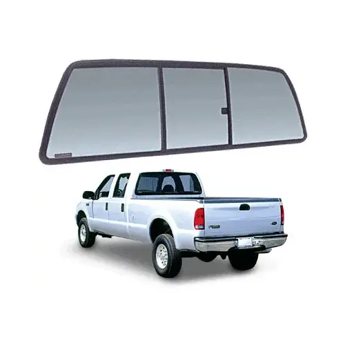 CRL Tri-Vent Slider with Solar Glass for 1999-2007 F-250/F-350/F-450/F-550 Super Duty can be easily installed and is just like the original factory backglass. It comes with popular solar privacy glass and includes features like curved glass technology and black silk frit edges. The exclusive self-lock latch system makes it a convenient one hand operation. Whether it is traditional gasket-mounted or contemporary bonded installation, C.R.Laurence manufactures guarantees a slider with better than factory quality style and function. CRL provides you with over 50 model years of truck sliders for virtually any pick up from road. Frame Measurements: Width 64-5/8" (1641 mm); Height 18-1/2" (470 mm). Daylight dimensions when fully open: 15-3/4" x 15-3/4" (400 x 400 mm). Important Notes If an OEM style slider is to be replaced, a new gasket may be required. Once the order is placed we will contact you to verify or you can also call us directly to verify at 1-305-851-2811. DS 06/27/2016