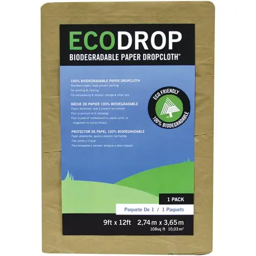 Trimaco's SuperTuff EcoDrop Drop cloth is made of heavy, absorbent Kraft paper that helps prevent tracking. They are economical and ideal for light paint work, plus it is made from 100% recycled material! Great for light painting and cleaning, wallpapering and removal, storage and other jobs. Measures 9 x 12 ft, ideal for large rooms or areas.