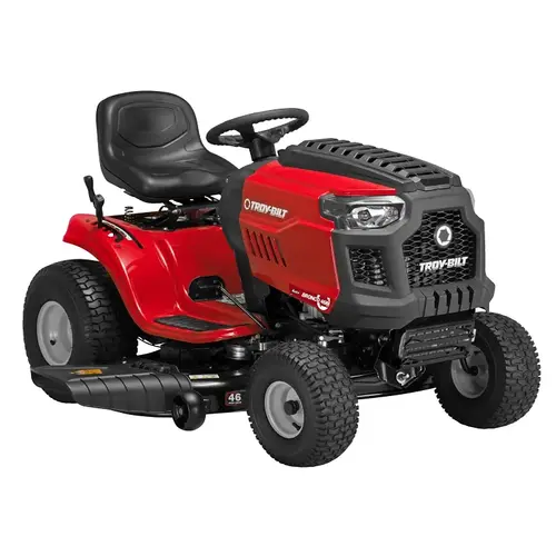 Troy-Bilt Cut Lawn Tractor, Kohler Engine, 547 cc Engine Displacement, HP Rating: 18 hp, 1 -Cylinder, 46 in Cutting Width, Number of Height Positions: 5, Foot Operated Automatic Transmission, 2 Blades, Mid-Back Seat, Number of Deck/Anti-Scalp Wheels: 2, 20 x 8 in Rear Wheel, 15 x 6 in Front Wheel, Front Axle: Steel