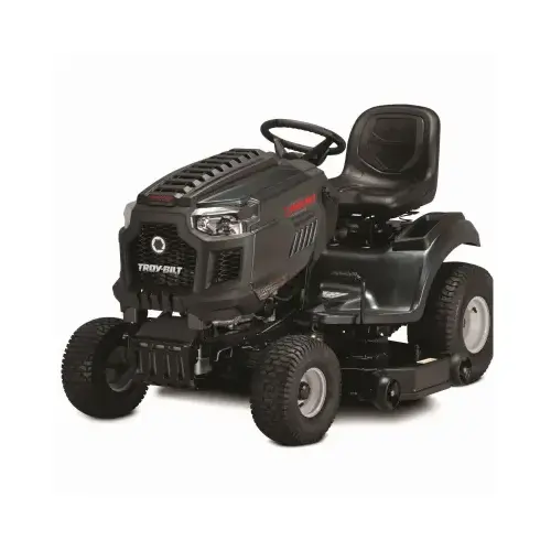 Tackle the tough jobs with a Troy-Bilt Super Bronco 46K FAB XP riding mower. It features a 46 in fabricated steel deck with welded seams for durability. The convenient rear hitch lets you quickly attach tow-behind accessories, like dump carts, spreaders or aerators (attachments sold separately). You'll ride in comfort with the adjustable, high-back seat and the hydrostatic transmission with cruise control is designed for a smooth change of speed and direction. The AGM battery is designed to provide reliable starting season after season.