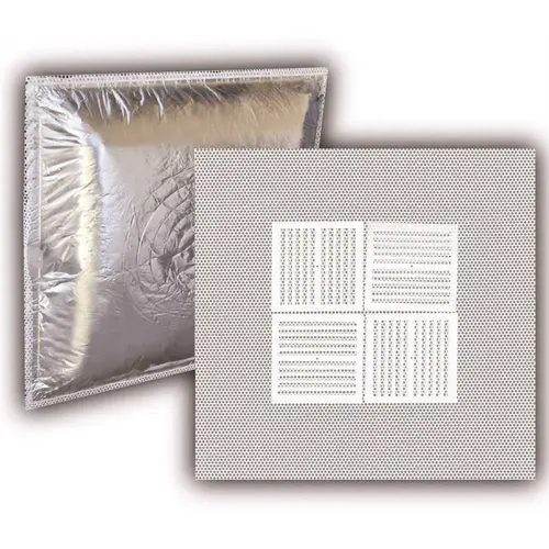 Our 1010MAS model comes with an attractive perforated steel face finished in white power-coat. The supply model includes black air deflectors for enhanced air distribution. This product also includes R-6 Fiberglass backing and Seismic support tab.