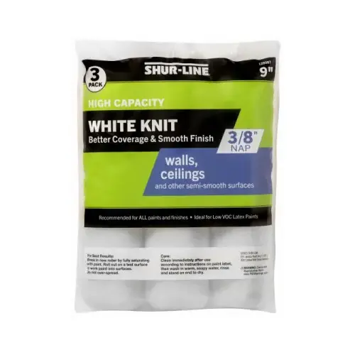 30012403, Shur-Line, 3 Pack, 9" x 3/8" Nap, Knit Roller Cover, For All Paints & Stains On Semi Smooth Surfaces.