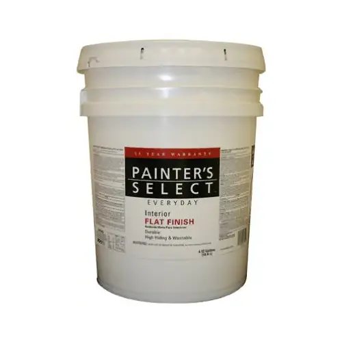 JF-P, Painter's Select Everyday, 5 Gallon, Pastel Base Interior Flat Latex Wall Paint, Washable Flat Finish, Ideal For Walls & Ceilings, Easy Soap & Water Clean Up, Quick Drying/Non Spatter Formula, 15 Year Warranty, VOC Less Than 50 Grams Per Litre.