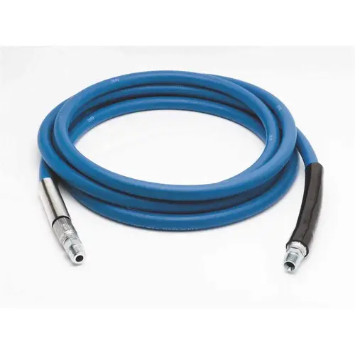 This 15 ft. blue hose is a replacement part for our open 15 ft. retractable hose reel. It has 3/8 in. male fittings on both ends. Will withstand temperatures of 140°.
