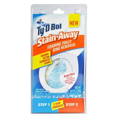 The Ty-D-Bol stain away foaming toilet ring remover provides high performing foaming action breaks down and removes existing, stubborn stains.